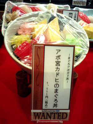 色々あったのですが、これが一番インパクトが強かったので貼ってみました。他にも「シャア専用」〔←マグロオンリー〕等がありました。TFTという会場近くの建物なので、もし気になる方がいらしたら、その季節にでも見に行ってみてください。味は普通だそうです。